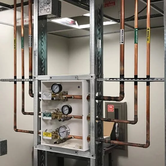 Installation of pipe work and plant to safely distribute medical gasses, such as oxygen, through out hospitals,